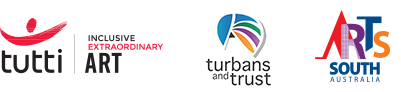 The artworks are the result of a series of turban workshops, facilitated by portrait artist Daniel Connell with members of Tutti Visual Arts and Adelaide’s Sikh community.